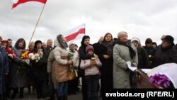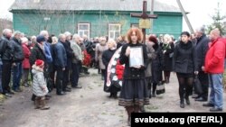На могілках выступіла жонка Віктара Сырыцы Тацяна, якая заклікала мясцовых актывістаў зьбірацца і працягваць справу яе мужа: