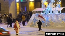 68-гадовая грамадзкая актывістка Ніна Багінская ў навагоднюю ноч у Менску прайшла зь бел-чырвона-белым сьцягам ад Акадэміі навук да Плошчы Незалежнасьці. І потым са сьцягам вярнулася грамадзкім транспартам дахаты.