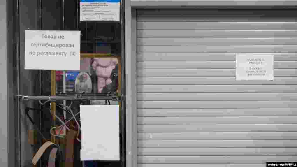 Большасьць шапікаў ды павільёнаў гандлёвага цэнтру «Ждановічы» не працуе. На дзьвярах вісяць аб’явы: «Павільён не працуе ў сувязі з афармленьнем дакумэнтаў».