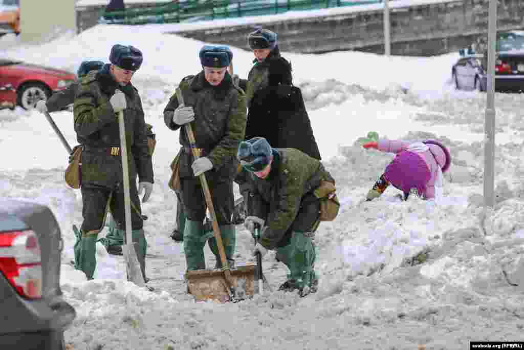 У Менску курсантаў Вайсковай акадэміі накіравалі на ўборку сьнегу пасьля ўчарашняга цыклёну «Даніэла».
