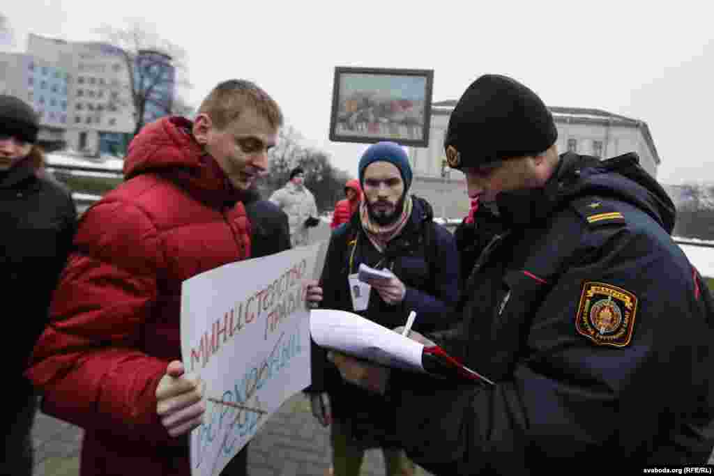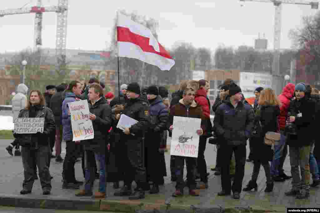Праз мэгафон спадар Лябедзька зьвярнуўся да ўдзельнікаў, згадаўшы пра ганебны факт зьбіцьця супрацоўнікамі міліцыі грамадзкіх актывістаў і журналіста ў судзе Фрунзенскага раёну Менску падчас працэсу ў справе графіцістаў. Сам ён трымаў плякат «Выбірай tut.by або tut.bей», былі і больш радыкальныя — так, актывіст Максім Вінярскі заклікаў «Остановить ментовский беспредел».
