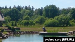 І вось мы пад’яжджаем да маёнтку былога прэзыдэнта. Над вялікім драўляным домам лунае чырвона-бела-чырвоны латыскі сьцяг. Побач з домам вялікі сад, лазьня і штучнае азярцо. На мастках у крэсьле-качалцы — прэзыдэнт Улманіс у сонечных акулярах. Я не магла не сфатаграфаваць, бо гэта фантастычны кадр. І думаю, што вопытны палітык таксама гэта разумеў.