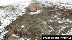 Побач з каменем дзьве плямы крывы — адна бліжэй, другая далей.Некалькі ямінаў, вырытых сапёрамі, валяюцца гумовыя пальчаткі. Варонкі ці сьлядоў ад выбуху не відаць. Хадзіць там, як запэўнілі прадстаўнікі Сьледчага камітэту, можна, бо мясцовасьць правераная сапёрамі.