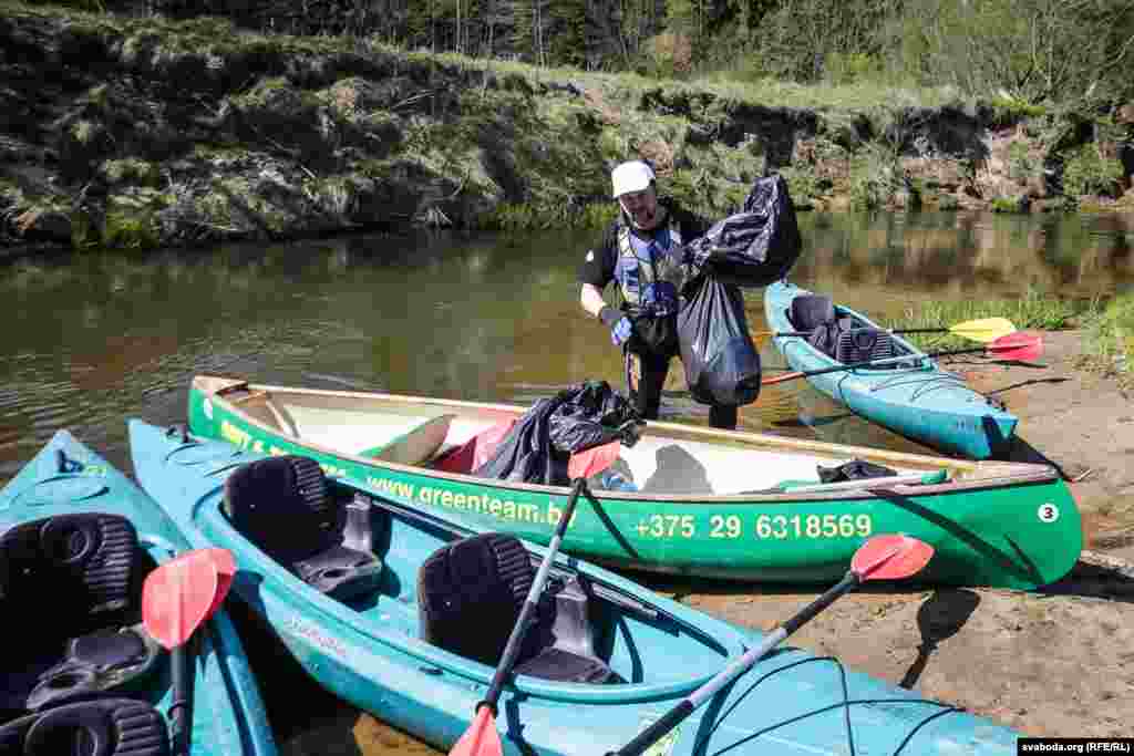 Павераны ў справах ЗША ў Рэспубліцы Беларусь Скот Роланд прыбірае плястыкавыя бутэлькі, кінутыя беларускімі адпачывальнікамі