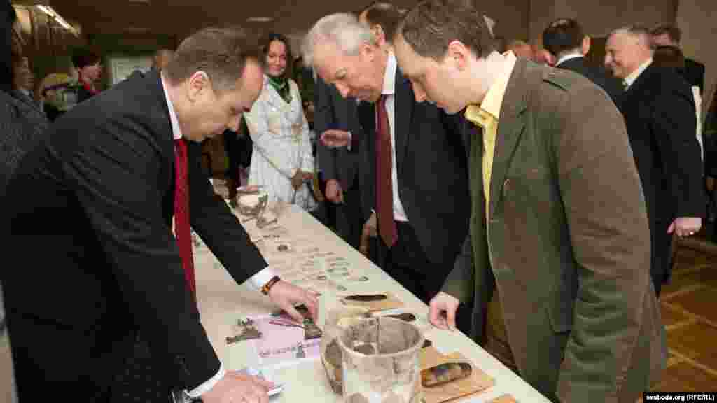 Аляксандр Каваленя, акадэмік-сакратар аддзяленьня гуманітарных навук і мастацтваў НАНБ. Аляксандар Лакотка, дырэктар Інстытуту мастацтвазнаўства, этнаграфіі і фальклору імя Кандрата Крапівы НАНБ, першы намесьнік міністра адукацыі Вадзім Богуш