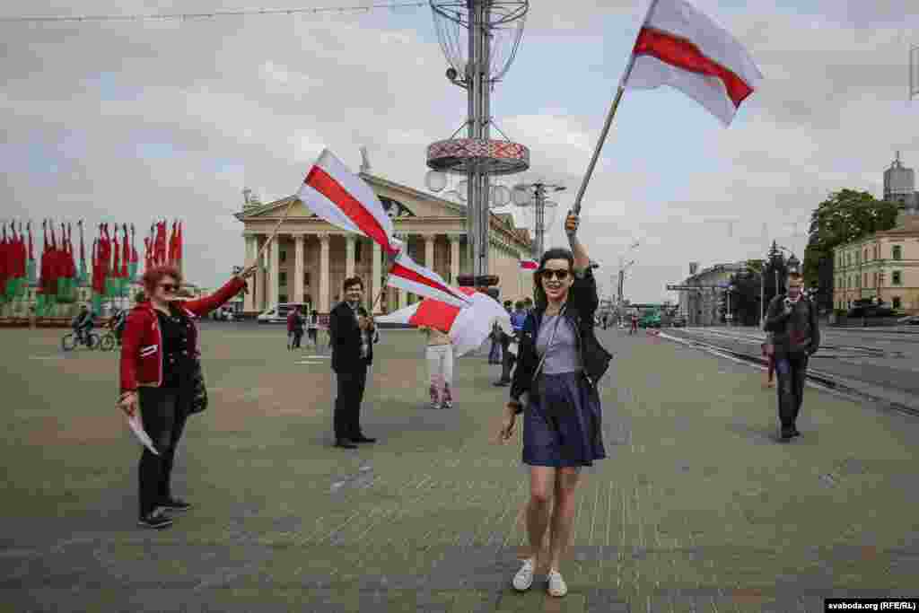 Моладзь таксама прыйшла з бел-чырвона-белымі сьцягамі