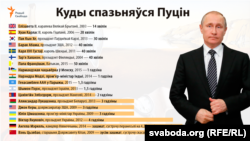 Зафіксаваны рэкорд спазьненьняў Пуціна — 4 гадзіны альбо 56,2% самай доўгай прамовы Лукашэнкі. За 16 год ва ўладзе зафіксавана прынамсі 18 спазьненьняў Пуціна да «высокіх асобаў».