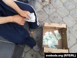 75-гадовая спадарыня Галіна (так яна назвалася) прысела на прыступках былога кінатэатру «Спартак» з кардоннай скрынкай, у якую мінакі кладуць дробныя, нікому ўжо не патрэбныя сторублёўкі. Бо з гэтай грашовай паперчыны нават ня выйдзе новай капейкі.
