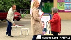 «За чатыры гадзіны сабралі дзесяць подпісаў. У асноўным людзі ня вераць у выбары, што наш кандыдат можа быць абраны. Усе кажуць, што вынікі будуць сфальшаваныя, бо нікога не дапусьцяць да падліку галасоў. Маўляў, каго з Масквы прызначаць, той і будзе абраны. Ня вераць таксама чыноўнікам, але, калі мы кажам, што наш кандыдат апазыцыйны, то тады больш-менш цікавяцца».