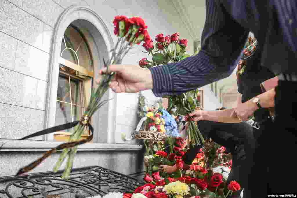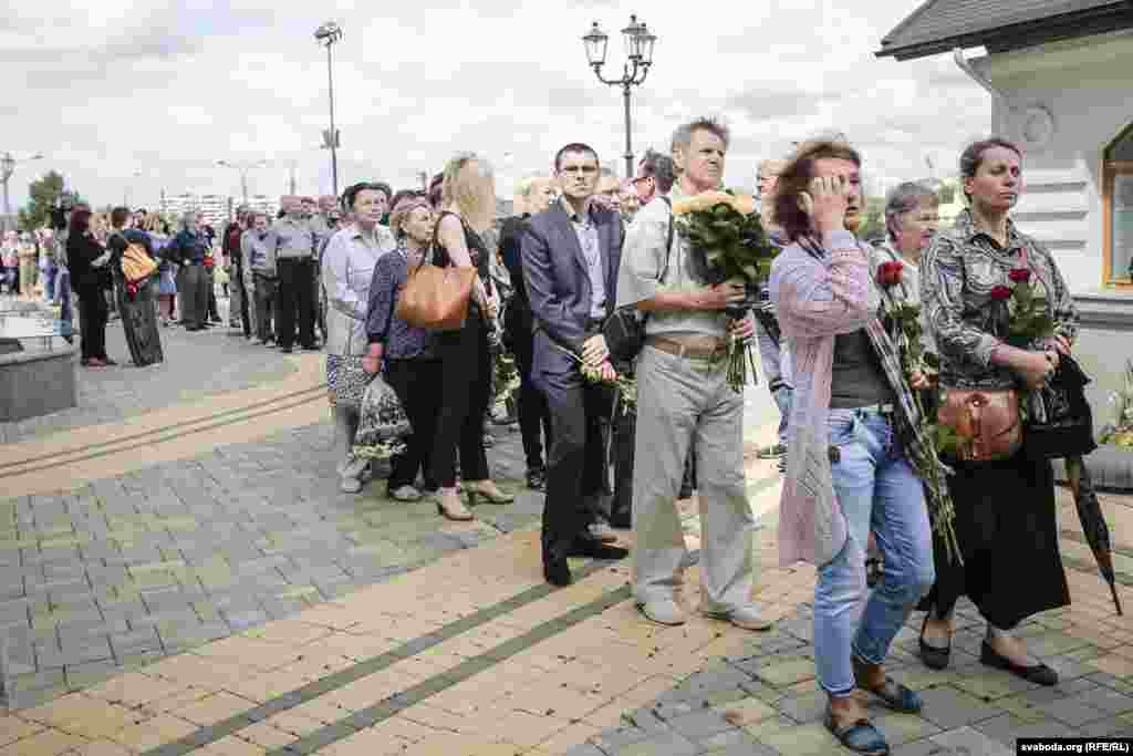 Цырымонія распачалася аб 11-й і будзе трываць да 14.00. Пахаваюць Паўла Шарамета на Паўночных могілках у 14:30.