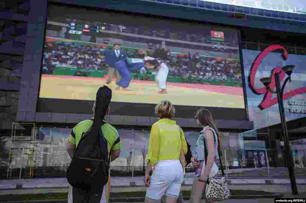 У Менску адкрылі пляцоўку зь вялікім экранам для прагляду Алімпійскіх гульняў. Вялікі экран ўсталяваны ля гандлёва-забаўляльнага цэнтру Galleria Minsk на Праспэкце пераможцаў.