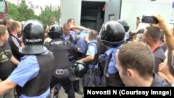 Затрыманых павінны былі перавезьці ў СІЗА Мікалаева. Аднак, калі іх вялі да аўтазака, натоўп накінуўся і на затрыманых, і на паліцэйскіх, якія суправаджалі іх — у іх плявалі і білі. Калі ўсе шасьцёра падазраваных ужо сядзелі ў аўтазаку, натоўп пачаў разгойдваць машыну і ледзь было яе ня перакуліў.