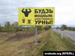 Перад рэчкай Іпуць і пасьля яе на дадатак да рэклямных шчытоў будаўнічых матэрыялаў усталяваныя жоўтыя білборды з павучальнымі надпісамі па-беларуску, праўда, зь некаторымі памылкамі: «Будзь моцным — данясі смецце да урны!», «Вучыце дзяцей добрым манерам!». Білборды, аказваецца, вырабленыя на замову Гомельскага камітэту аховы прыродных рэсурсаў і аховы навакольнага асяродзьдзя, пра што паведамляецца ўнізе драбнейшымі літарамі, напісанымі чамусьці на расейскай мове.