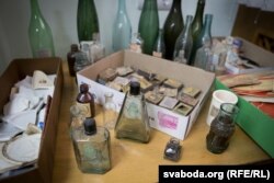 «Прыкладна ў такім», — Сьвятлана бярэ ў рукі скрынку з рэшткамі пакамечанай паперы. Распавядае, што дасьледавалі кожны кавалак, каб ня страціць нечага каштоўнага. І кожны адсканавалі.