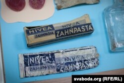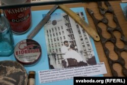 Кельмы, скобы, мантажны пас з канопляў — будаўнічыя прылады, а таксама цыгарэтныя абгорткі, старыя савецкія газэты і іншыя артэфакты сабралі ў «даваенную» частку экспазыцыі. «Лапушка Грыша, 1927», — алоўкам напісана знутры пустой скрынкі ад запалак.