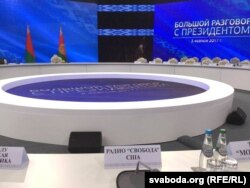 За круглым сталом — месцы, адведзеныя для журналістаў.