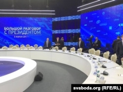 На сустрэчу з Аляксандрам Лукашэнкам сабралася каля 300 чалавек, у тым ліку журналісты, дэпутаты, міністры, экспэрты, прадстаўнікі грамадзкіх арганізацый, сьвятары розных канфэсій.