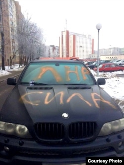«Палітычная акцыя правакацыйнага характару ў дачыненьні да маёй сям’і зьдзейсьненая сёньня. Раніцай патэлефанавалі суседзі і сказалі, што на аўта маёй жонкі надпіс фарбай. Напісалі наступныя словы: „ЛНР СІЛА“. Таксама пад шчоткі лабавога шкла паклалі копіі даляраў!