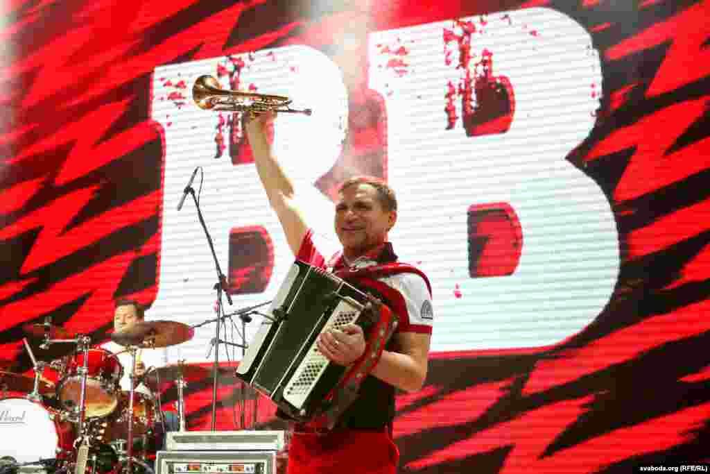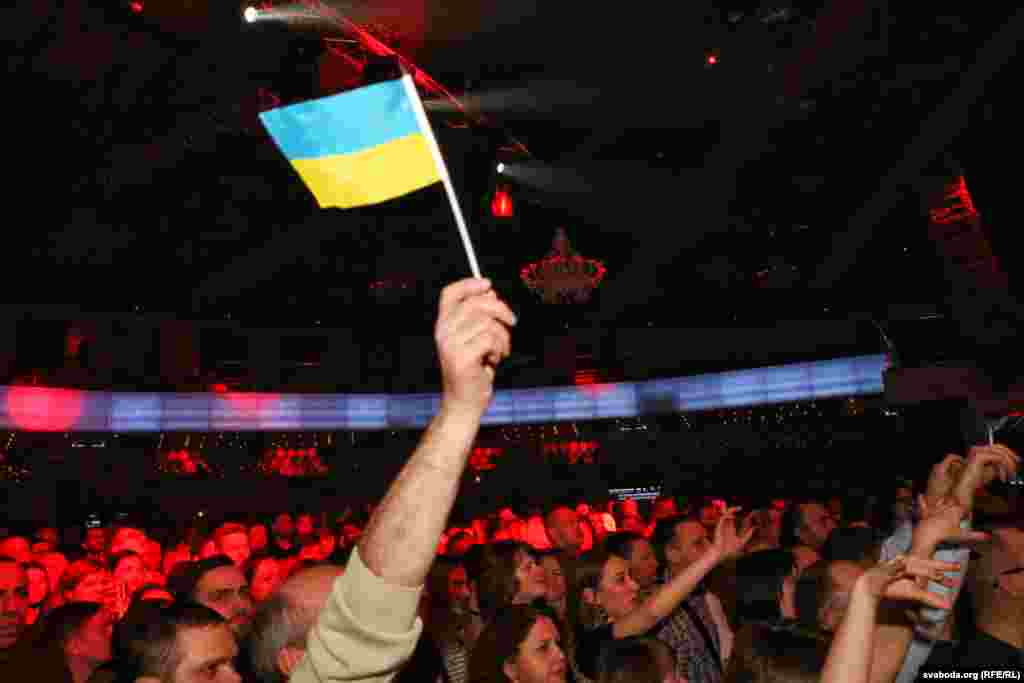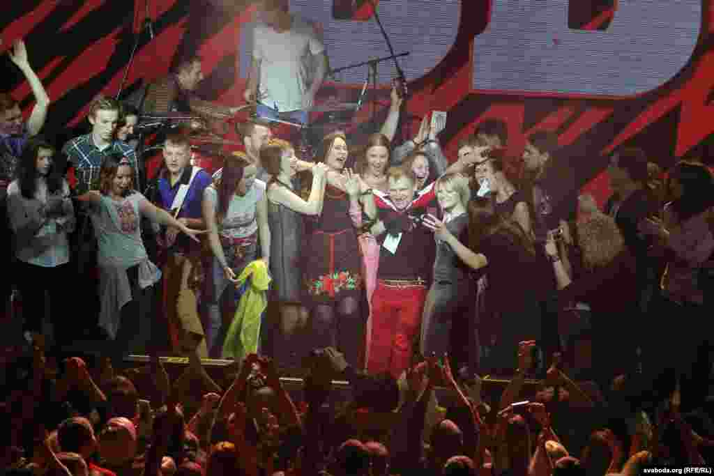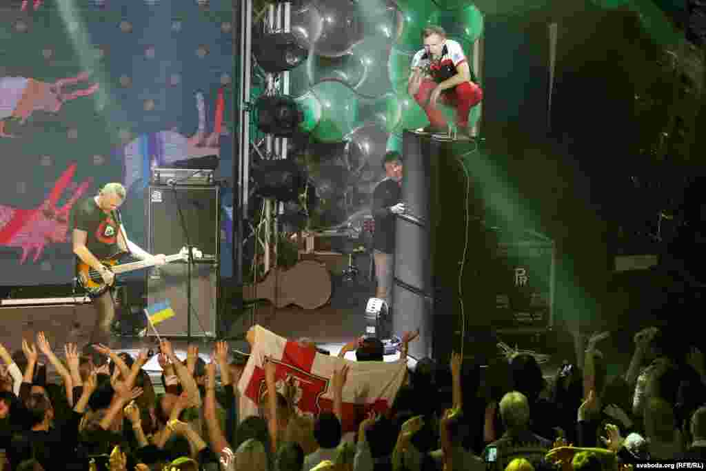 Бел-чырвона-белыя і блакітна-жоўтыя сьцягі на канцэрце «Воплі Відаплясава» у Менску ФОТА