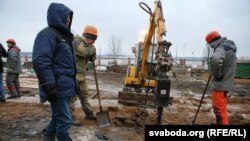На пытаньне карэспандэнткі Свабоды адзін з рабочых патлумачыў, навошта будуюць дадатковую агароджу: