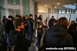 9:40 Падтрымаць перамовы зь менскімі ўладамі прыйшлі каля 20 чалавек. Апэратыўнікі ў цывільным вядуць відэаздымкі. Людзі паводзяць сябе спакойна. У холе ўсіх на відэа здымае міліцыянт.