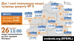 «Адна з задач — паказаць геаграфію пратэсту. Раней лічылася, што пратэст — гэта прывілея Менску. Я лічу, мы выбралі правільную стратэгію, што зрабілі стаўку на рэгіёны. Вельмі важна паказаць, што дэкрэт № 3 — гэта не праблема апазыцыі ў Менску, а наадварот, яна закранае вялікую колькасьць грамадзян, якія да апошняга часу былі дэпалітызаваныя. Гэтая тэма аднолькава моцна гучыць як у Менску, так і ў рэгіёнах. Таму мы правялі акцыі ў абласных цэнтрах, а цяпер пераключаемся на меншыя гарады. Будзе вельмі цікава паглядзець, наколькі шматлікімі будуць акцыі. У Бабруйску акцыя пройдзе другі раз, можна чакаць, што яна будзе шматлюднай. А вось Рагачоў, Маладэчна, Пінск, Ворша — гэта параўнальна невялікія гарады, паглядзім, што там атрымаецца. Для нас гэта досьвед. Калі людзі выйдуць, то гэта будзе вельмі адэкватным адказам на рэпрэсіі і на агітпрам улады».
