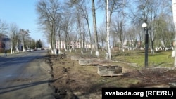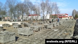 Маштабная рэканструкцыя вядзецца ў цэнтры, на Краснай плошчы. Сквэр прарэджаны, некаторыя дрэвы сьпілаваныя. Рабочыя з Брагіну, якія працуюць у ДРСУ-155, зьнялі ўсю плітку з ходнікаў, каб замяніць яе на сьвежую.