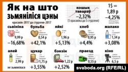 Радыё Свабода працягвае штомесячны маніторынг цэнаў у Беларусі на самыя неабходныя тавары. У межах праекту «Не для нас ананас» мы адсочваем, колькі каштуюць у пачатку кожнага месяца 7 прадуктаў харчаваньня (сьвініна, бульба, яйкі, хлеб, малако, алей і цукар), а таксама аўтамабільнае паліва, праезд у транспарце і квіток у кінатэатар.
