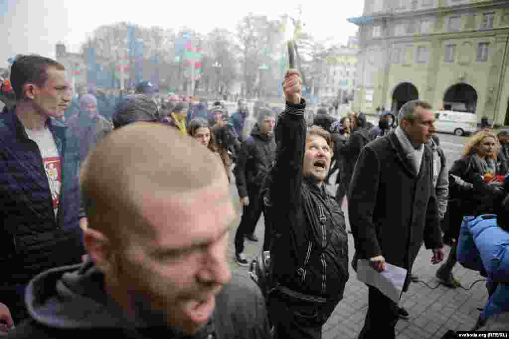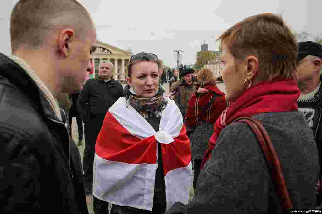 На плошчу прыйшлі палітыкі Ўладзімер Някляеў, Павал Севярынец, Вячаслаў Сіўчык, жонка затрыманага Статкевіча Марына Адамовіч, актывістка Ніна Багінская зь бел-чырвона-белым сьцягам, 84-гадовы прафэсар Мікола Савіцкі, актывісты Максім Вінярскі, Яўген Афнагель ды іншыя. Удзельнікі акцыі разгарнулі некалькі бел-чырвона-белых сьцягоў. Былі людзі і з афіцыйнымі чырвона-зялёнымі сьцягамі, а таксама з чырвоным савецкім. Міліцыянты заклікалі людзей разысьціся і пагражалі ўжываньнем фізычнай сілы і спэцсродкаў.