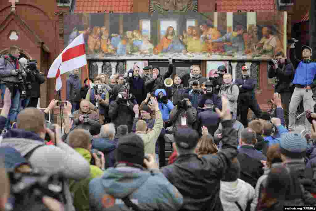 Нягледзячы на забарону, людзі пачалі зьбірацца на Кастрычніцкай плошчы, спачатку іх туды не пускала міліцыя. На суседніх вуліцах было заўважана шмат аўтазакаў, іншай спэцтэхнікі.