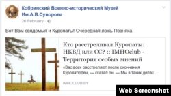 Пасьля ўчорашняй публікацыі на Свабодзе старонка Кобрынскага ваенна-гістарычнага музэя імя Суворава ў Фэйсбуку недаступная для наведваньня.