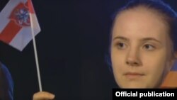 Беларускі сьцяжок трымала дзяўчынка сярод іншай моладзі, якая знаходзілася па пэрымэтры трыбуны з запрошанымі гасьцямі. Побач луналі сьцяжкі шэрагу іншых дзяржаў — Швэцыі, Турэччыны, Вялікай Брытаніі, Літвы, Канады, Польшчы ды іншых.