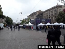 З раніцы ён вырашыў прайсьціся зь бел-чырвона-белым сьцягам па пакуль што зацішнай фан-зоне, створанай у самым сэрцы ўкраінскай сталіцы — на вуліцы Крэшчацік. Але за фіналам, таксама зь беларускім нацыянальным сьцягам, будзе назіраць ужо непасрэдна ў зале Міжнароднага выставачнага цэнтру.