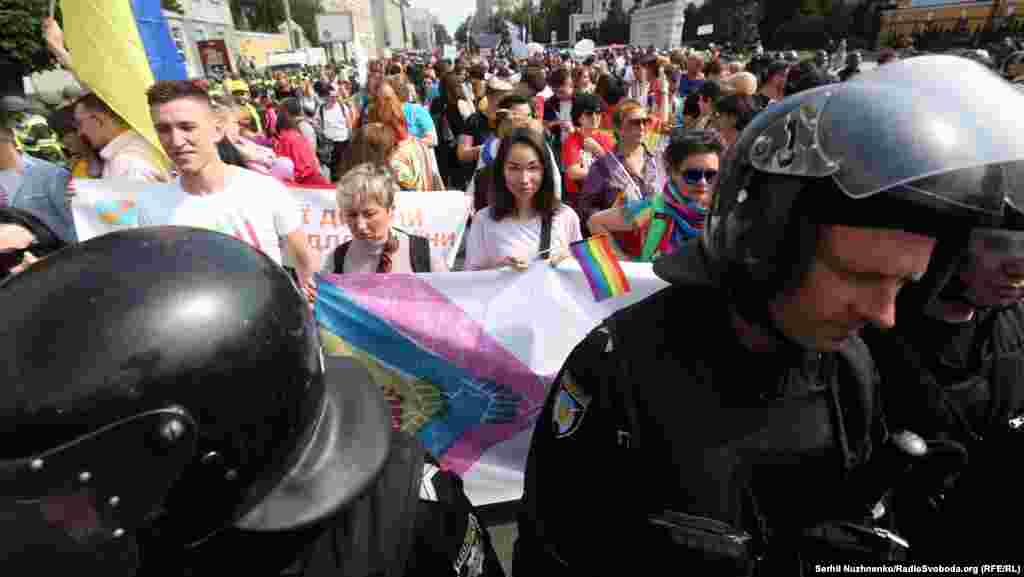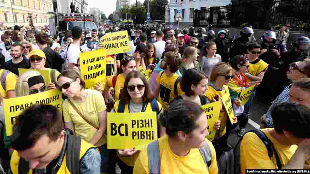 18 чэрвеня ў Кіеве адбыўся Марш роўнасьці. Перад яго пачаткам праціўнікі акцыі, сярод якіх каля сотні прадстаўнікоў пераважна нацыяналістычных арганізацый, недалёка ад парка імя Тараса Шаўчэнкі, утварылі «ланцуг», бесьперапынна рухаючыся па пешаходным пераходзе. Як паведамілі ва ўправе Нацпаліцыі ў Кіеве, на месцы правядзеньня мерапрыемства ўсталявалі фільтрацыйныя пункты, дзяжурылі кінолягі і конная паліцыя. Агулам 5500 праваахоўнікаў гарантавалі бясьпеку падчас акцыі.