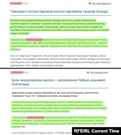За два гады ў краіне шмат што зьмянілася. Памёр прэзыдэнт Іслам Карымаў, яго месца заняў экс-прэмʼер Шаўкат Мірзіёеў. Але УзА працягвае пісаць тэксты пра лідэра краіны па адных і тых жа лякалах, зьмяняючы толькі імёны.