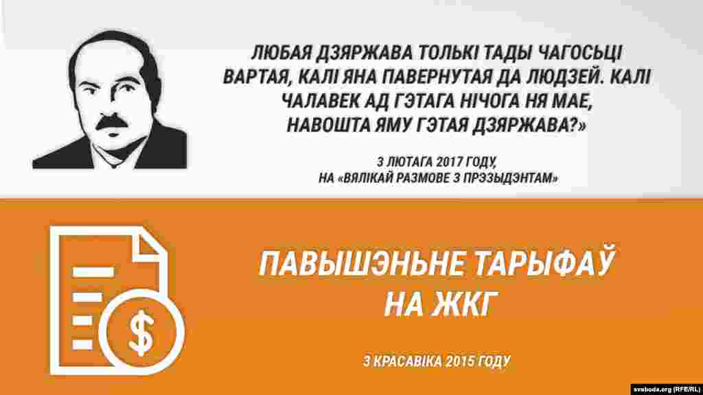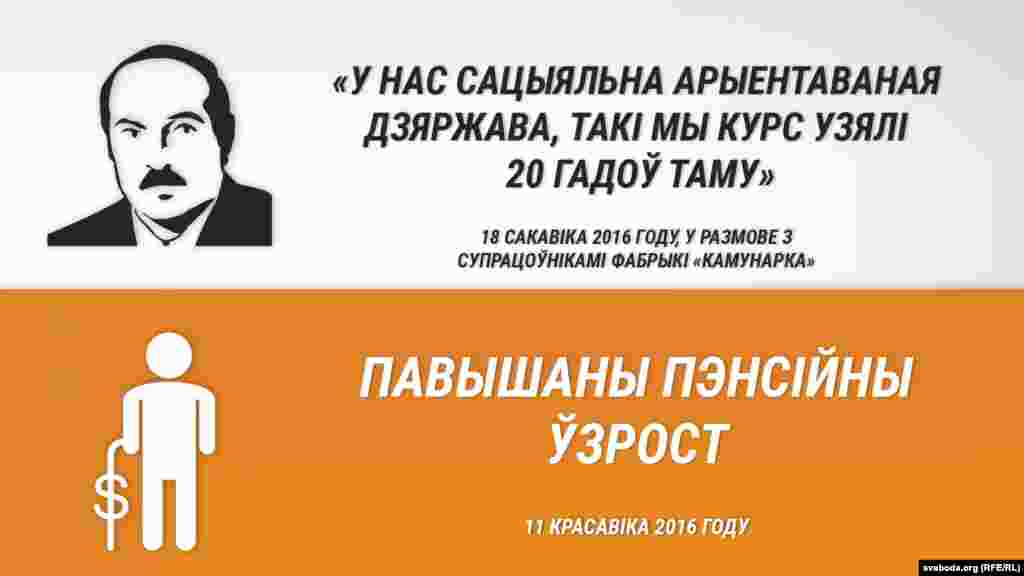 Беларусь — сацыяльная дзяржава, напісана ў Канстытуцыі краіны. Свабода сабрала выказваньні Аляксандра Лукашэнкі, якія па часе прыкладна супалі з увядзеньнем непапулярных зьменаў у сацыяльнай палітыцы.