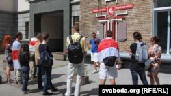 Перад гэтым зранку яны зладзілі прыбіраньне «народнага» помніка Міхасю Жызьнеўскаму на вуліцы Грушэўскага, дзе вывесілі новы бел-чырвона-белы сьцяг.