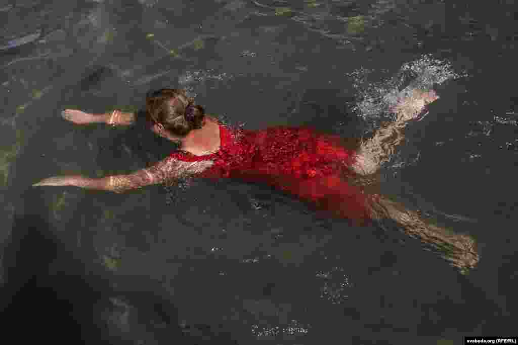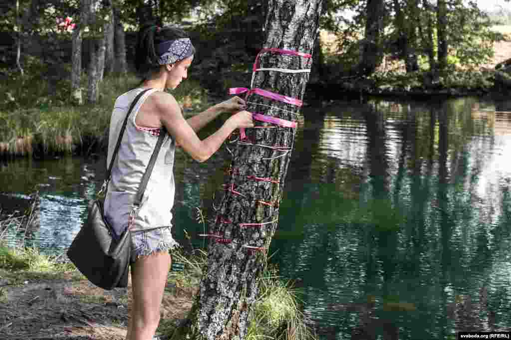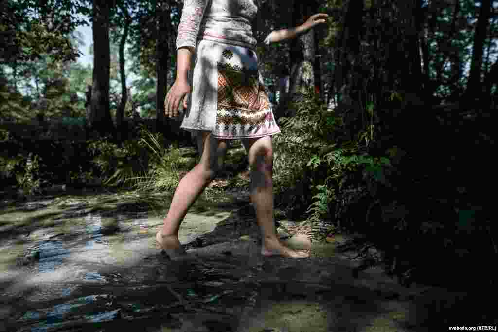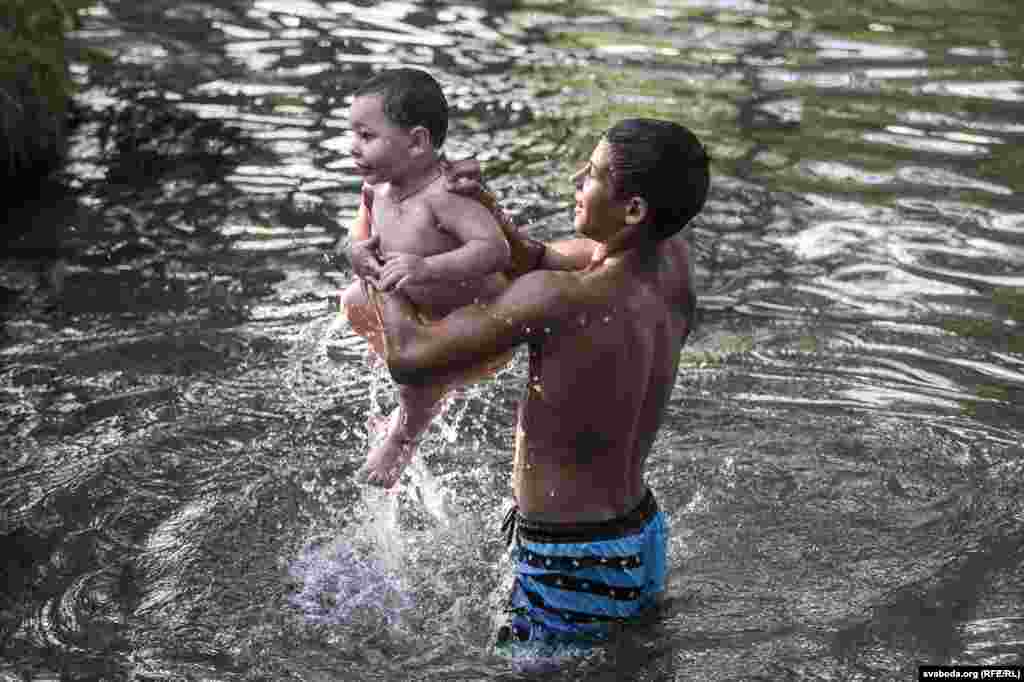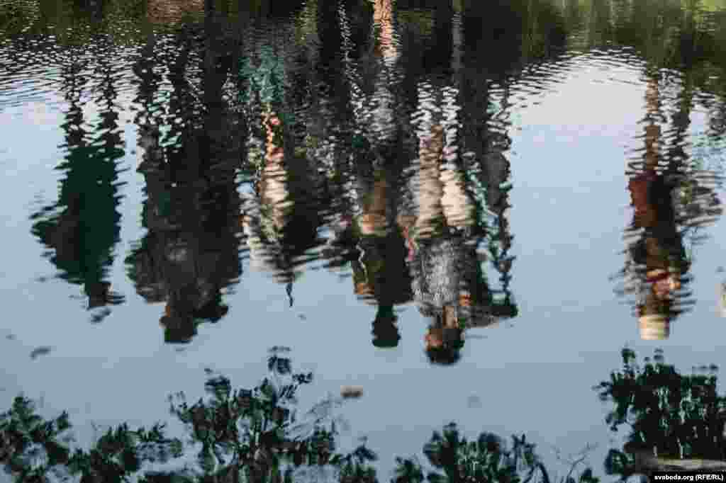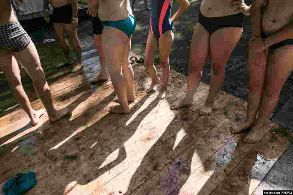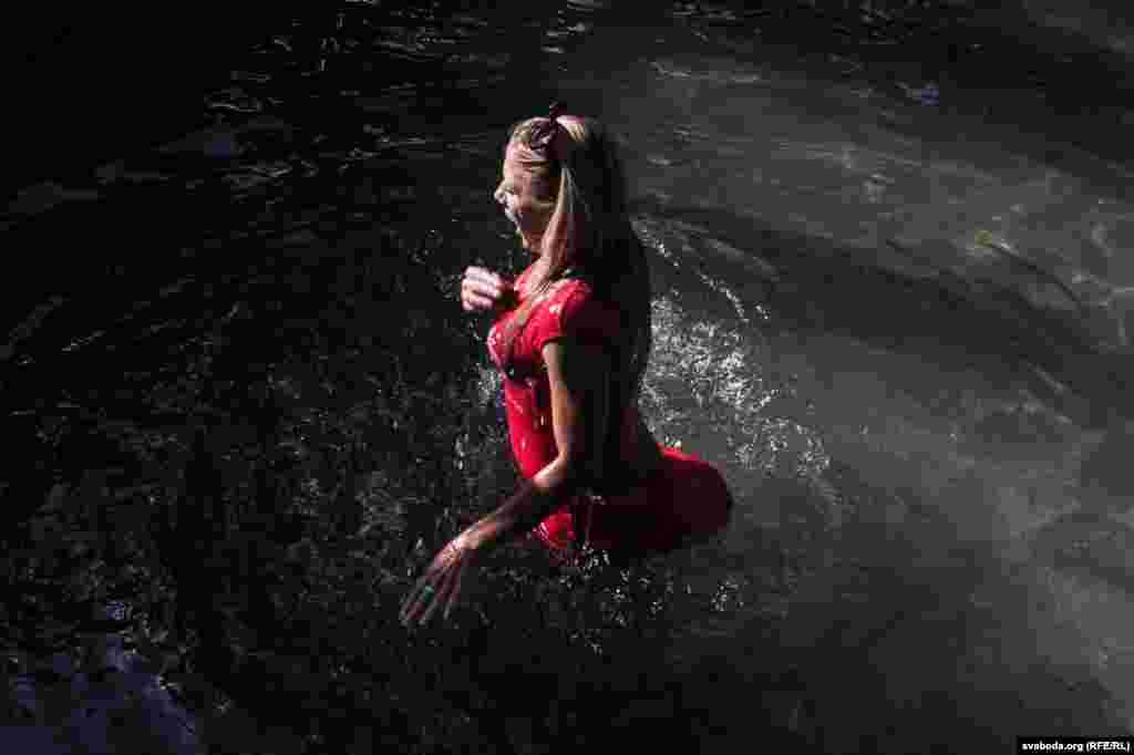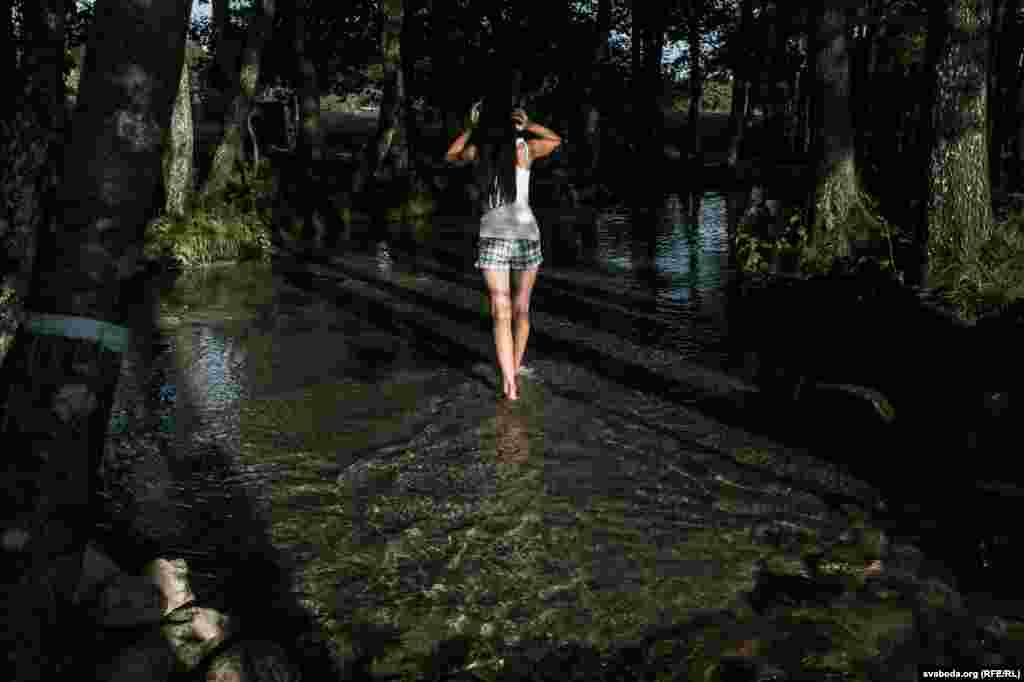 Вада ледзяная, але кожны стараецца тры разы перайсьці цераз крыніцу туды і назад. Іншыя акунаюцца цалкам.