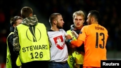 БАТЭ аштрафавалі на 5000 эўра за заўзятара, які выбег на поле са сьцягам