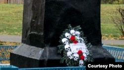 «Палічылі, што кветкі будуць такому кату занадта, то кветкі састрыглі. Прымацавалі выявы чарапоў і надпіс "Гары ў пекле, кат". Дадалі трохі калючага дроту, каб было маляўніча. Калючы дрот — гэта сымбаль бальшавізму», — распавядае Ашурак. Пакінулі каля помніку і традыцыйныя для такога месца гвазьдзікі.