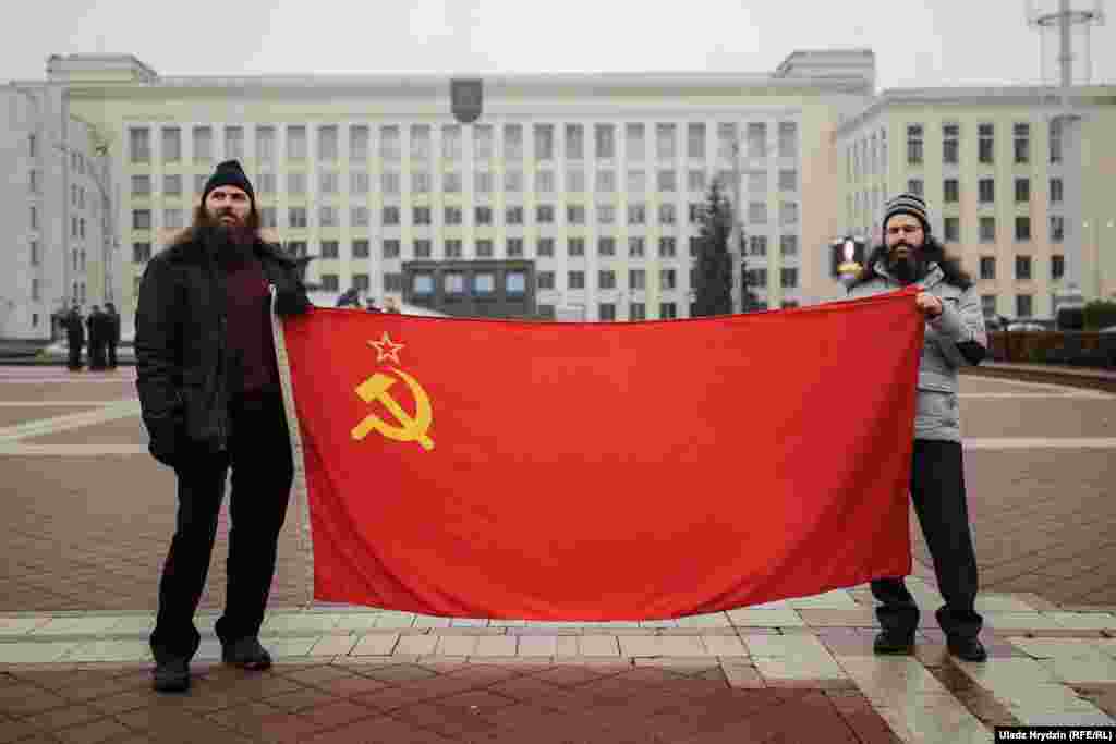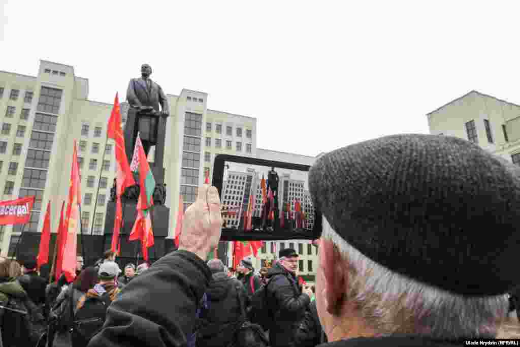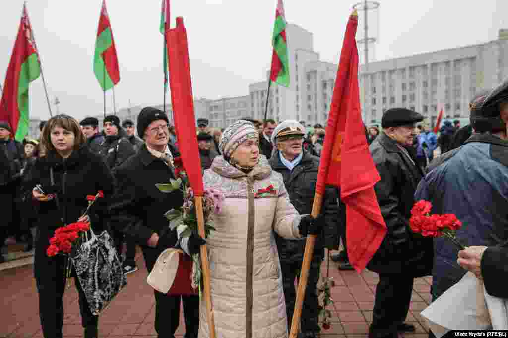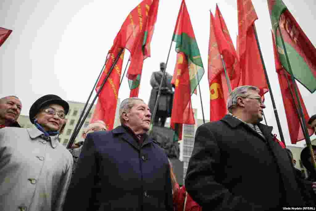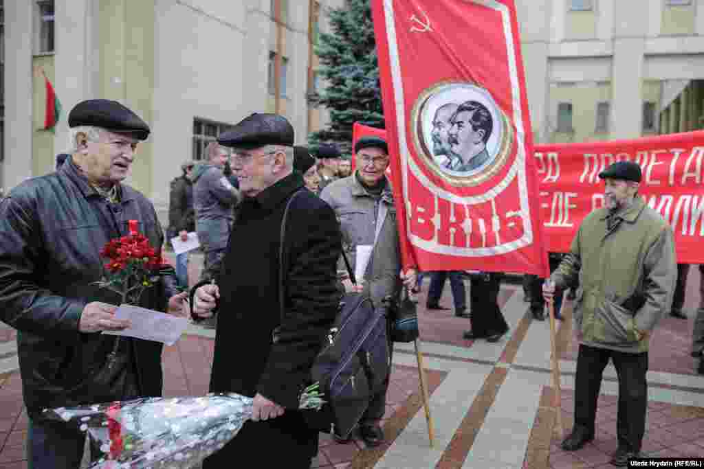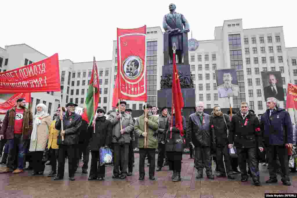 ВІДЭА: З партрэтамі Леніна і Сталіна ў Менску адзначылі 100-годзьдзе бальшавіцкай рэвалюцыі