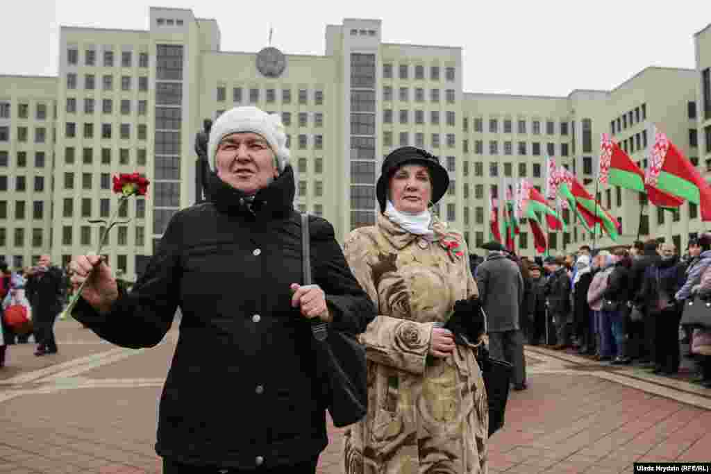 Адзначыць 100-годзьдзе Кастрычніцкай рэвалюцыі на плошчу Незалежнасьці ў Менску прыйшло каля 700 чалавек.