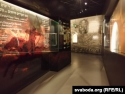 «Наша выстава мае тры пласты. Па-першае, мы тлумачым кантэкст, уводзім у гісторыю. Потым — само апавяданьне пры дапамозе цытатаў. Трэцяе — інтэрпрэтацыя. Бо калі цытаты вырваныя з кантэксту, то гэта будзе мець мала карысьці» — распавядае гід.