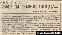 У тым самым 1992 годзе на даручэньне Апазыцыі БНФ я распрацаваў Канцэпцыю інфармацыйнай палітыкі, якая базавалася на прынцыпах свабоды прэсы, акцыянаваньні выданьняў і дзяржаўнай падтрымцы беларускамоўных СМІ.