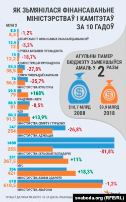 Свабода параўнала, як за гэты час зьмянілася фінансаваньне паасобных міністэрстваў і ведамстваў.