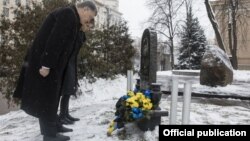 Прэзыдэнт Украіны Пятро Парашэнка разам з жонкай Марынай сёньня зраніцы ўшанавалі памяць першых ахвяраў пратэстаў у цэнтры Кіева ў 2014 годзе — Міхаіла Жызьнеўскага ды Сяргея Нігаяна.