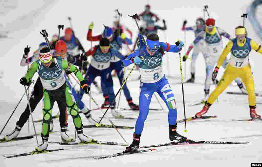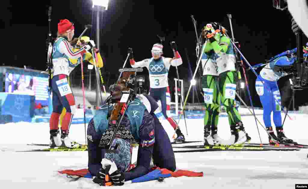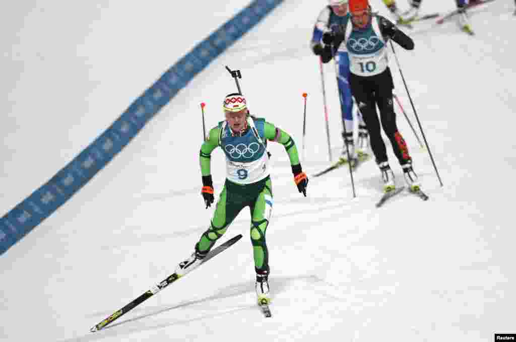 біятляністка Дар'я Домрачава. Яна стала другой у гонцы з масавым стартам.