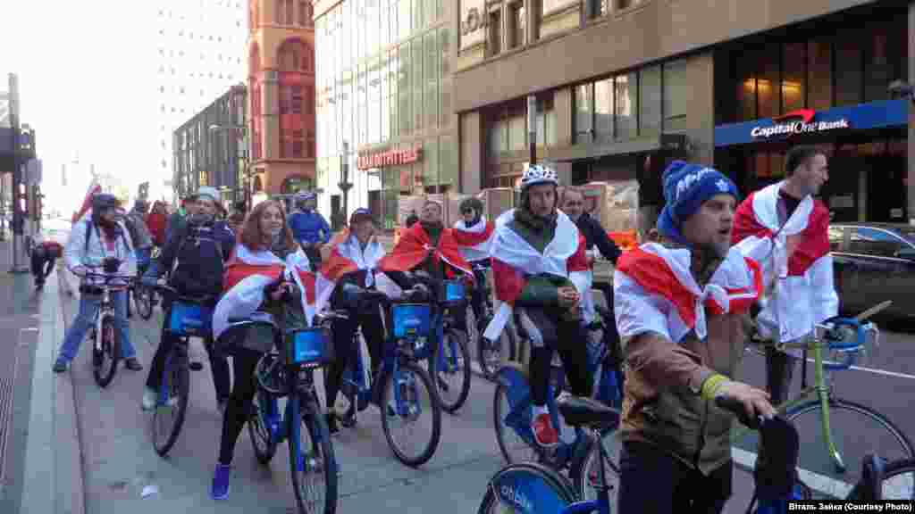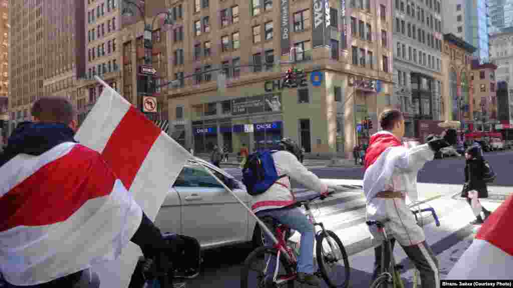 Бел-чырвона-белы парад на роварах па Мангэтане