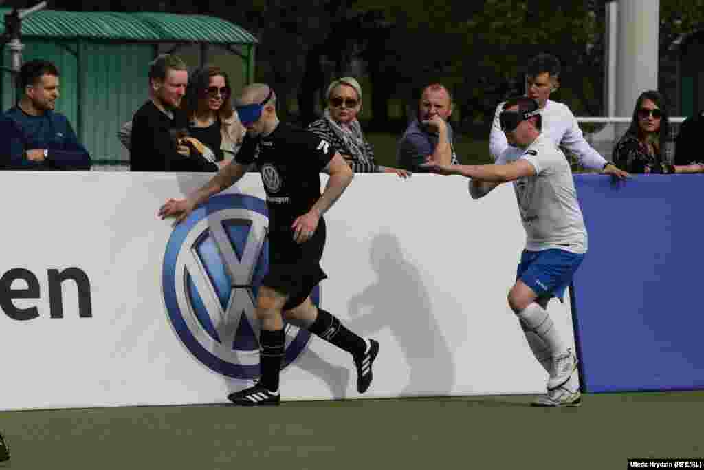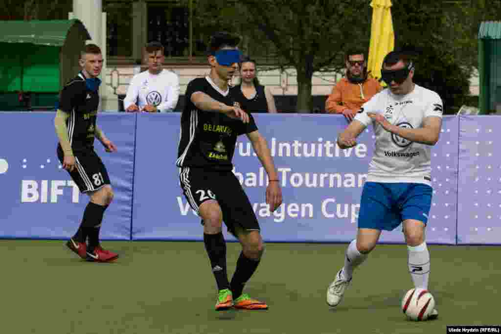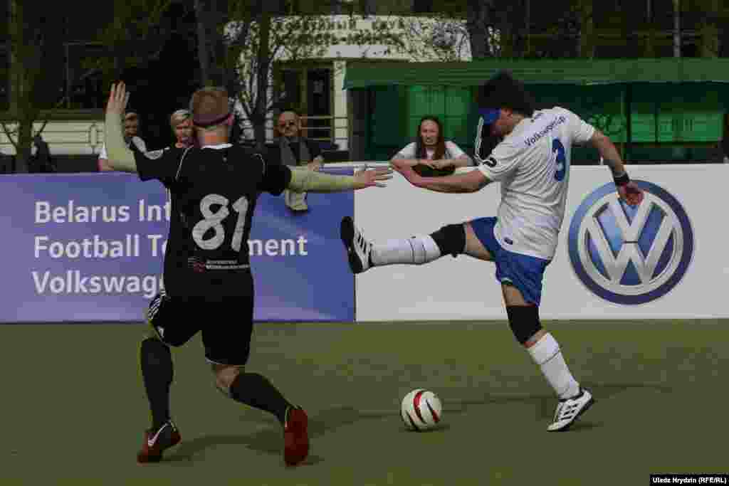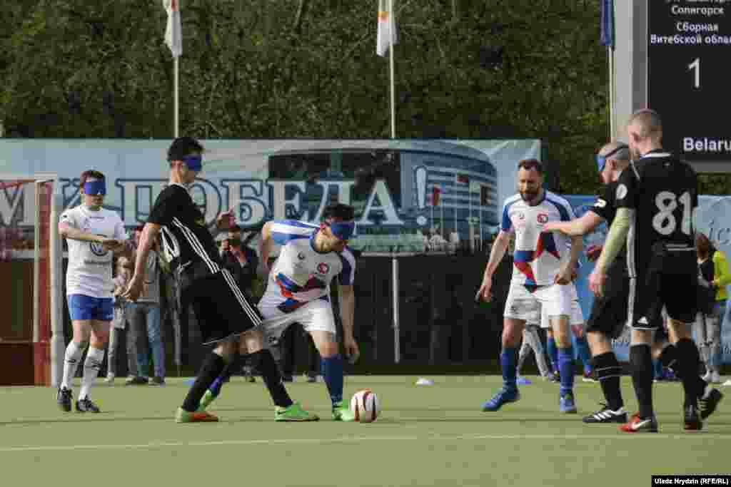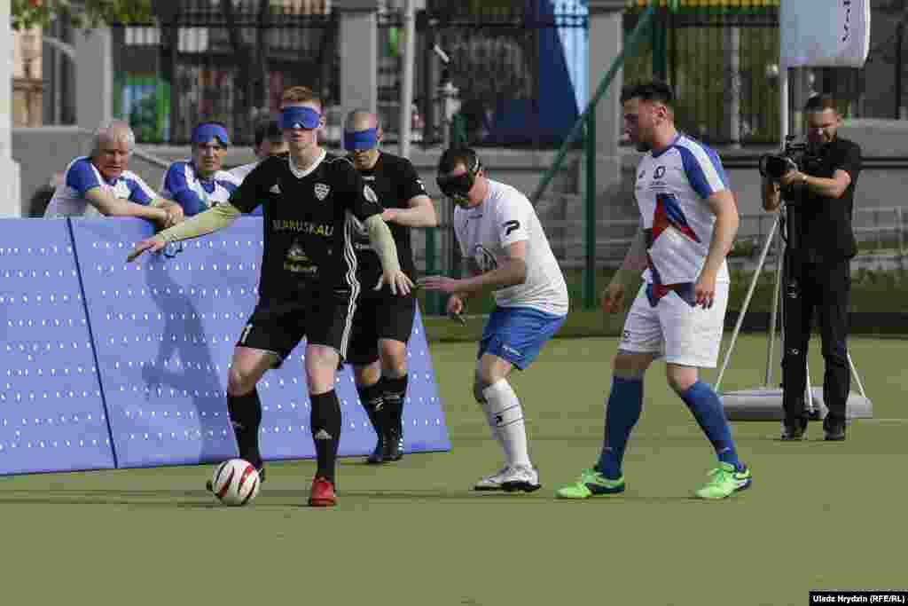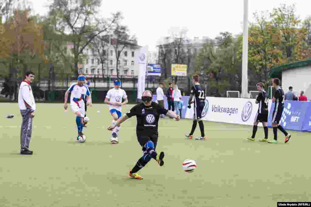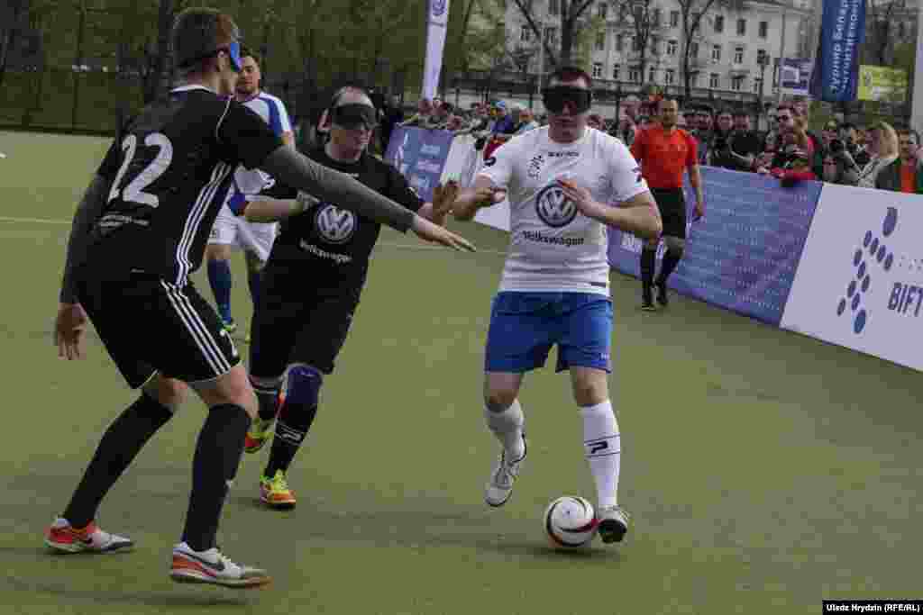 Незвычайны футбол з закрытымі вачыма прайшоў у Менску. Беларускія зоркі згулялі ў адной камандзе з гульцамі зборнай Беларусі па інтуітыўнаму футболу супраць каманды салігорскага Шахцёра і зборнай Віцебскай вобласьці па Інтуітыўнаму футболу.
