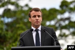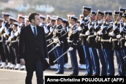 14 красавіка Францыя далучылася да авіяўдараў, нанесеных сіламі ЗША і Вялікабрытаніі па меркаваных заводах па вытворчасьці хімічнай зброі ў Сырыі. Раней Макрон падтрымаў заходнія санкцыі супраць Расеі пасьля атручваньня Сяргея і Юліі Скрыпалёў ў Лёндане, выслаў з Францыі 4 расейскіх дыпляматаў і нават байкатаваў расейскі стэнд у кніжным салёне ў Парыжы. Гэтыя меры каштавалі яму папрокаў — як унутры краіны, так і дзе-нідзе за мяжой — у празьмерным раўненьні на Вашынгтон, «атлянтызму» і адмове ад традыцыйнай галісцкай палітыкі незалежнасьці Францыі.